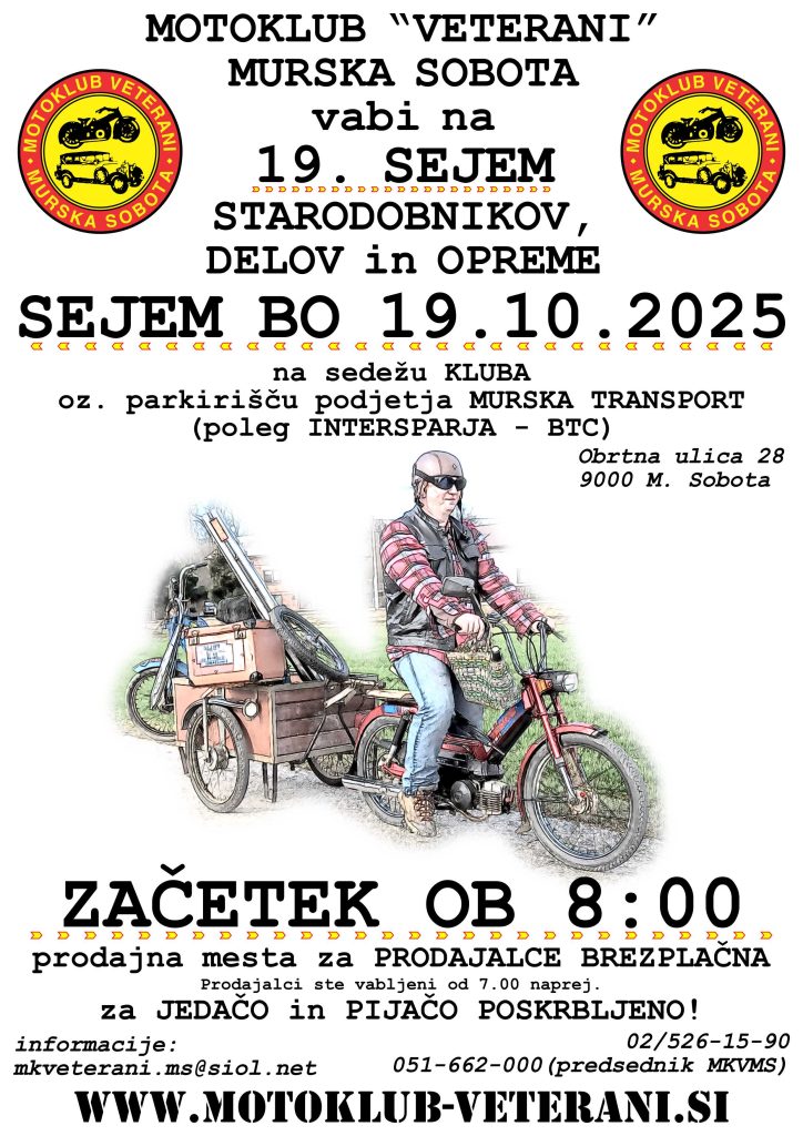 Sejem se bo začel ob 8:00 uri in odvijal pred sedežem kluba oz. parkirišču podjetja MURSKA TRANSPORT, Obrtna ulica 28, Murska Sobota.
